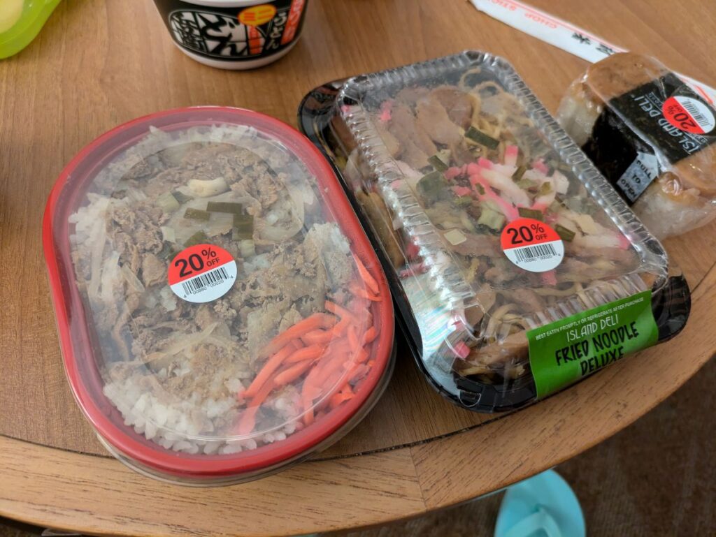 ホテル近くにABCストア(コンビニ的なお店)があったので、お弁当やカップ麺を買い込みました。